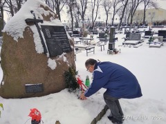 W tym roku, mimo pandemii, również uczciliśmy pamięć rodaków zesłanych na Sybir. W imieniu społeczności szkolnej Pan dyrektor Zbigniew Matuszewicz zapalił znicze w miejscach upamiętniających patrona szkoły: pod pomnikiem, na terenie naszej szkoły, poświęconym zesłaniom w latach 1940-1956, tablicą Matki Sybiraczki przy kościele p.w. Miłosierdzia Bożego i Świętej Faustyny w Toruniu, obeliskiem upamiętniającym zesłania w latach 1940-56, na cmentarzu im. Ofiar II Wojny Światowej w Toruniu.