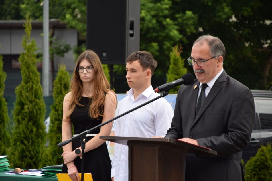 Pan Dyrektor Zbigniew Matuszewicz, w swoim przemówieniu, podziękował nauczycielom za zaangażowanie i organizowanie dla uczniów ciekawych wyjść, wyjazdów, konkursów, oraz udział w projekcie "Twoje dane-Twoja sprawa" i programie EPas. Szczególne podziękowanie za wieloletnią pracę na rzecz szkoły skierował do p. Hanny Senderek, pedagog szkoły, która przechodzi od września na emeryturę, oraz do p. Elżbiety Sadowskiej- nauczycielce biologii i chemii- która zmienia od nowego roku szkolnego miejsce pracy.