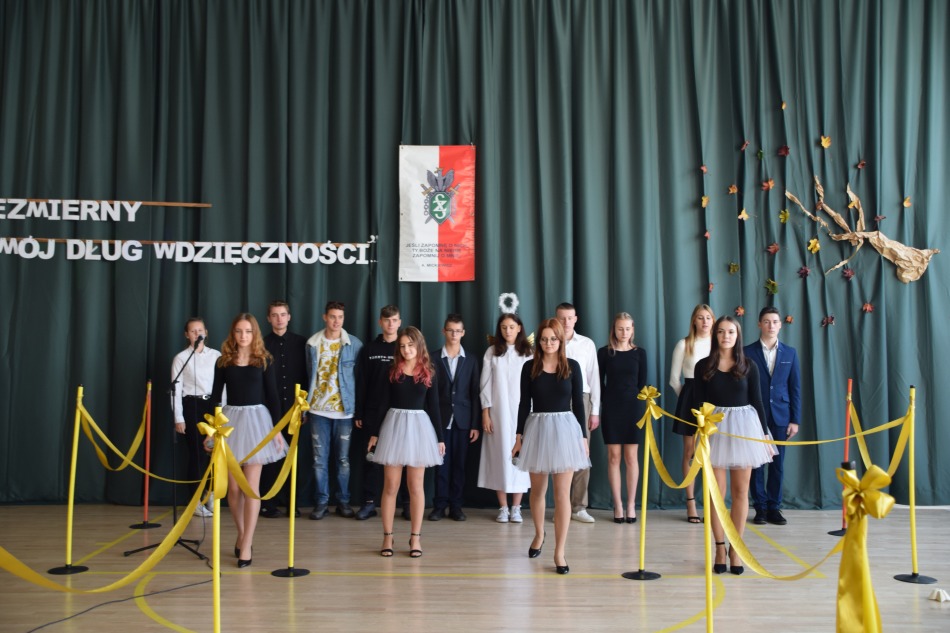 Szkolna uroczystość odbyła się 13 października. Została ona przygotowana pod kierunkiem p. Anny Lis i p. Krzysztofa Okinczyca