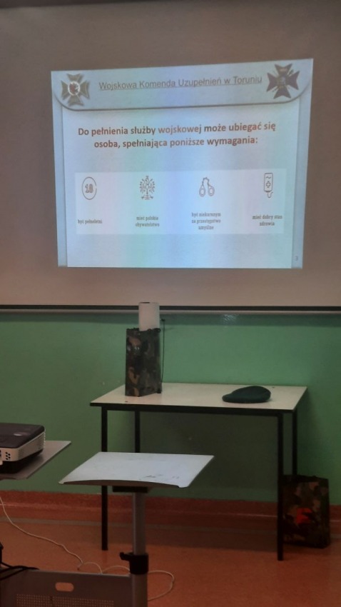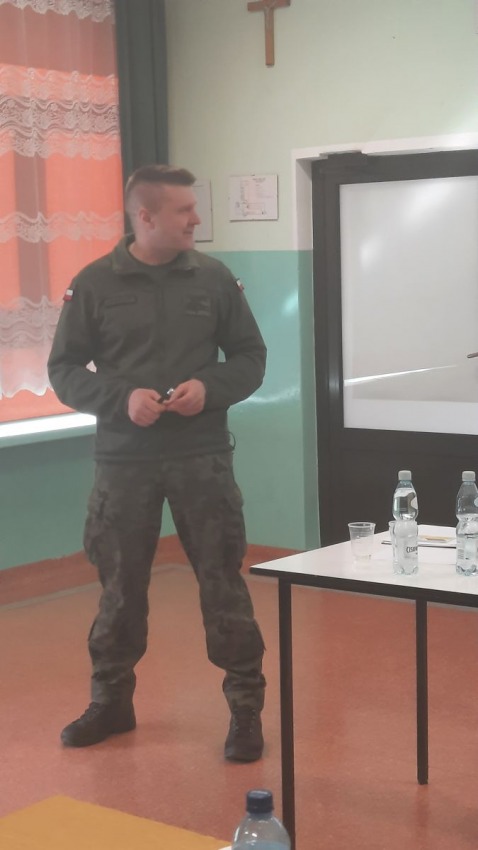 W piątek 25. marca gościł w naszej szkole pan podpułkownik Mariusz Marciniak z Wojskowej Komendy Uzupełnień, który wygłosił prelekcję na temat zawodów mundurowych. Prelekcja poprowadzona została w ramach doradztwa zawodowego realizowanego w naszej szkole. Pan podpułkownik Marciniak dokładnie nakreślił możliwości pełnienia służby wojskowej, do której  prowadzić mogą różne ścieżki edukacyjne. Uczniowie klas 3ag, 3bg, 3ap i 3bp mogli zapoznać się z wymogami stawianymi dla kandydatów do Wojsk Obrony Terytorialnej, Akademii Wojskowych i Szkół Podoficerskich, komendant mówił  też o walorach, możliwościach rozwoju i zarobków w tych zawodach.
