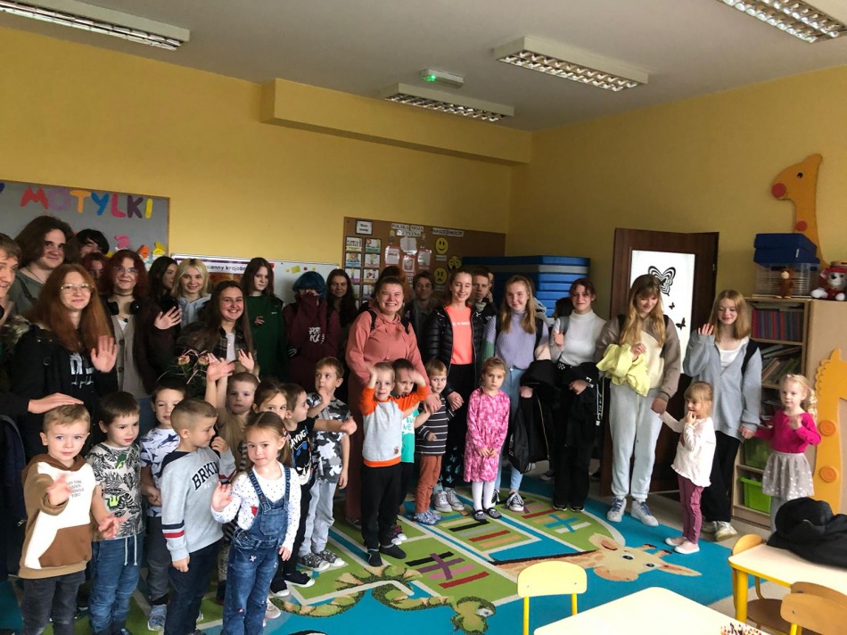 Dnia 25.10.2022 roku, uczniowie klasy I E, wraz z Anną Lis – nauczycielem podstaw pedagogiki, udali się z wizytą do przedszkola, funkcjonującego w Szkole Podstawowej nr 16 w Toruniu. W gościnnych progach Szkoły Podstawowej Nr 16, przywitała nas Pani wicedyrektor szkoły: mgr Katarzyna Lewińska, która opowiedziała młodzieży o placówce przedszkolnej. Obszerny wykład dotyczący funkcjonowania przedszkola, prowadzony przez Panią Wicedyrektor mgr K. Lewińską, stanowił najważniejszy element spotkania. Młodzież spotkała się również z młodszymi kolegami w sali przedszkolnej. Radość na twarzach dzieci, była dowodem na to, że starsi koledzy przypadli im do gustu. Pełni optymizmu uczniowie VI Liceum Ogólnokształcącego w Toruniu, czekają na kolejne spotkanie z dziećmi uczęszczającymi do Przedszkola w Szkole Podstawowej Nr 16 w Toruniu.