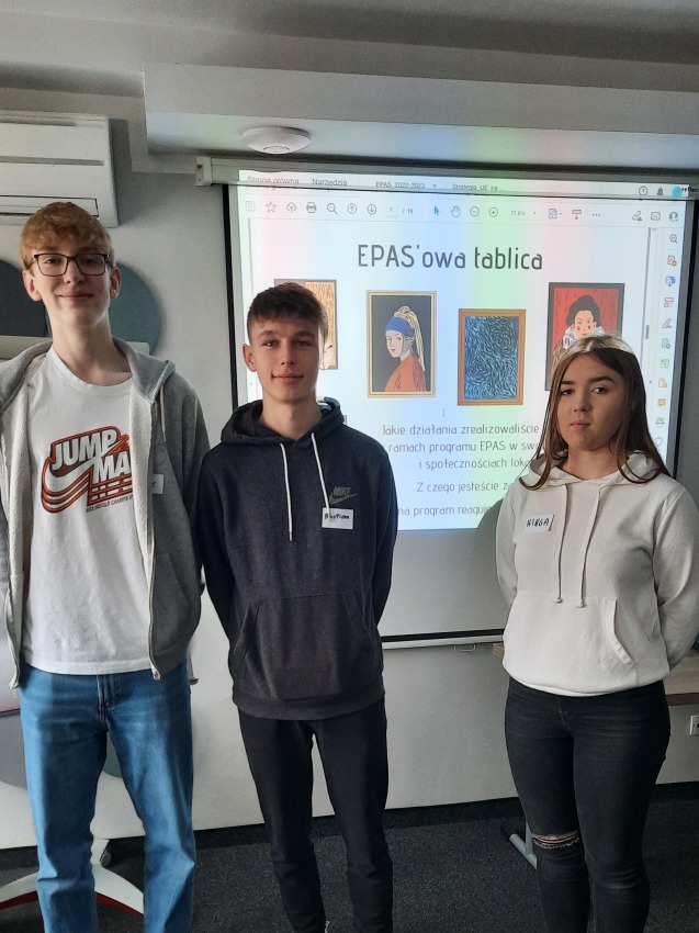 21.11.2022 w Toruniu odbyło się kolejne coroczne szkolenie Młodszych Ambasadorów Programu EPAS. W tym roku w szkoleniu, które miało miejsce w hotelu Kopernik brali udział uczniowie klasy IIA: Kinga Marcinkowska, Aleksander Hełminiak i Bastian Zdrojewski.
