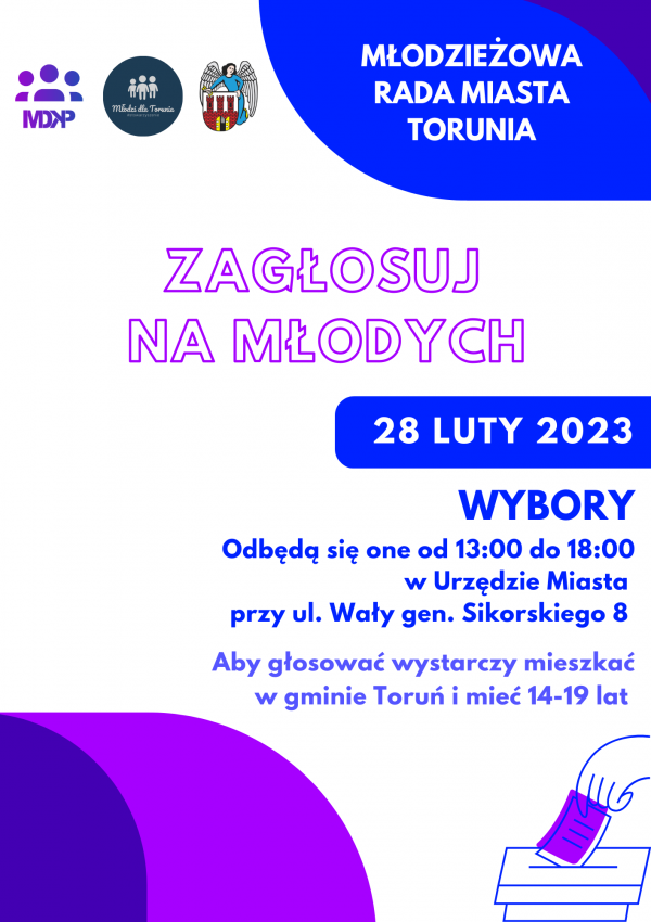W najbliższy wtorek 28 lutego 2023 roku odbędą się wybory do Młodzieżowej Rady Miasta Torunia.