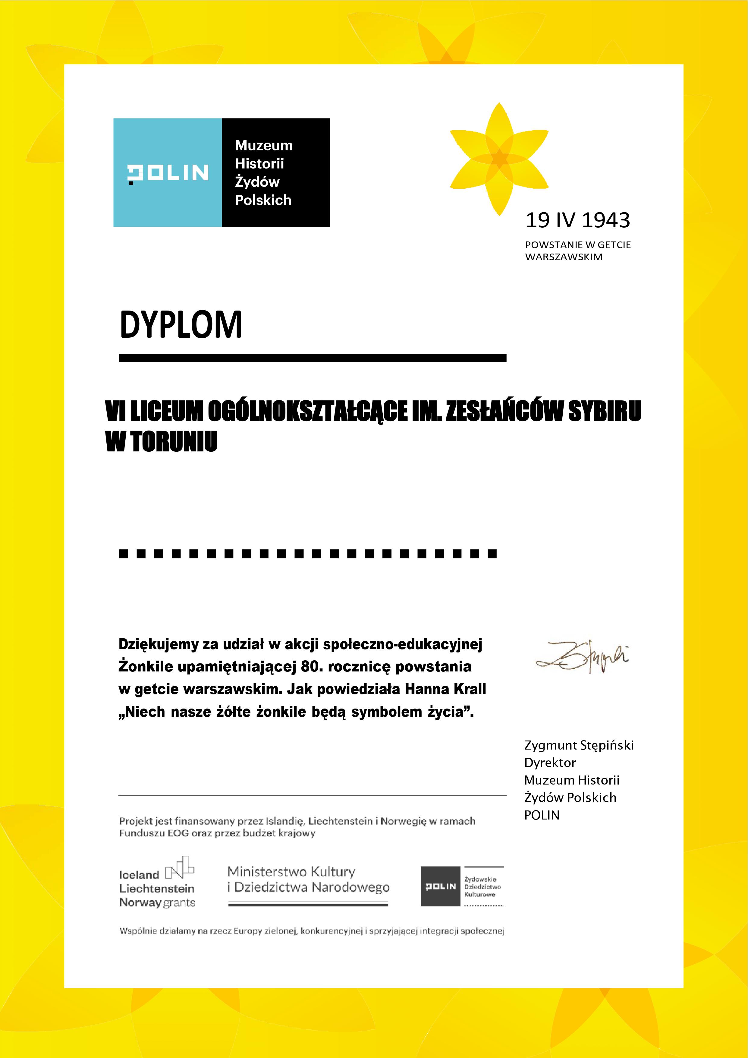AKCJA ŻONKILE - DYPLOM