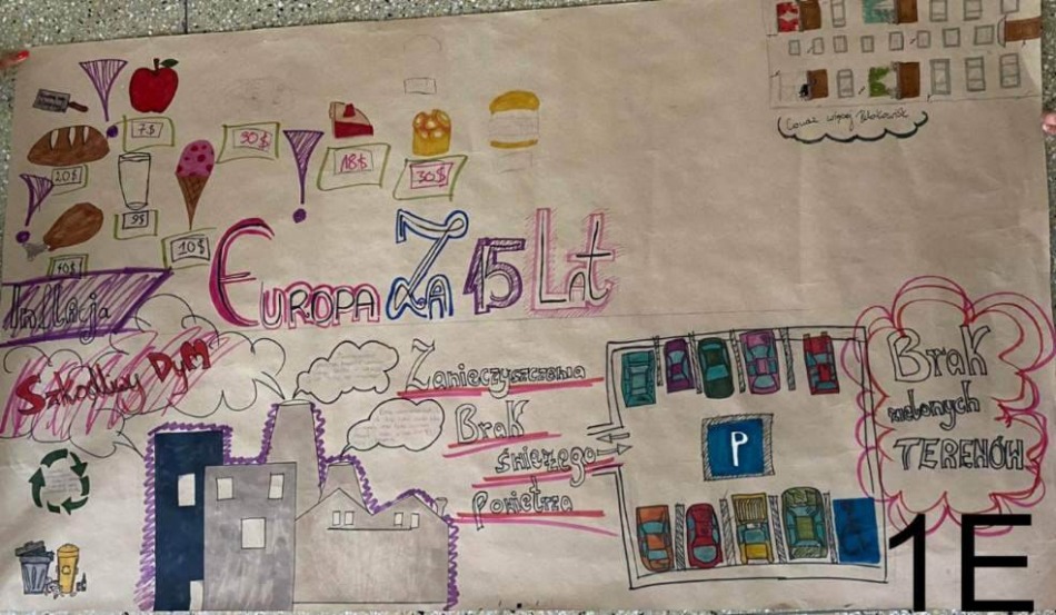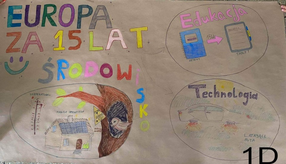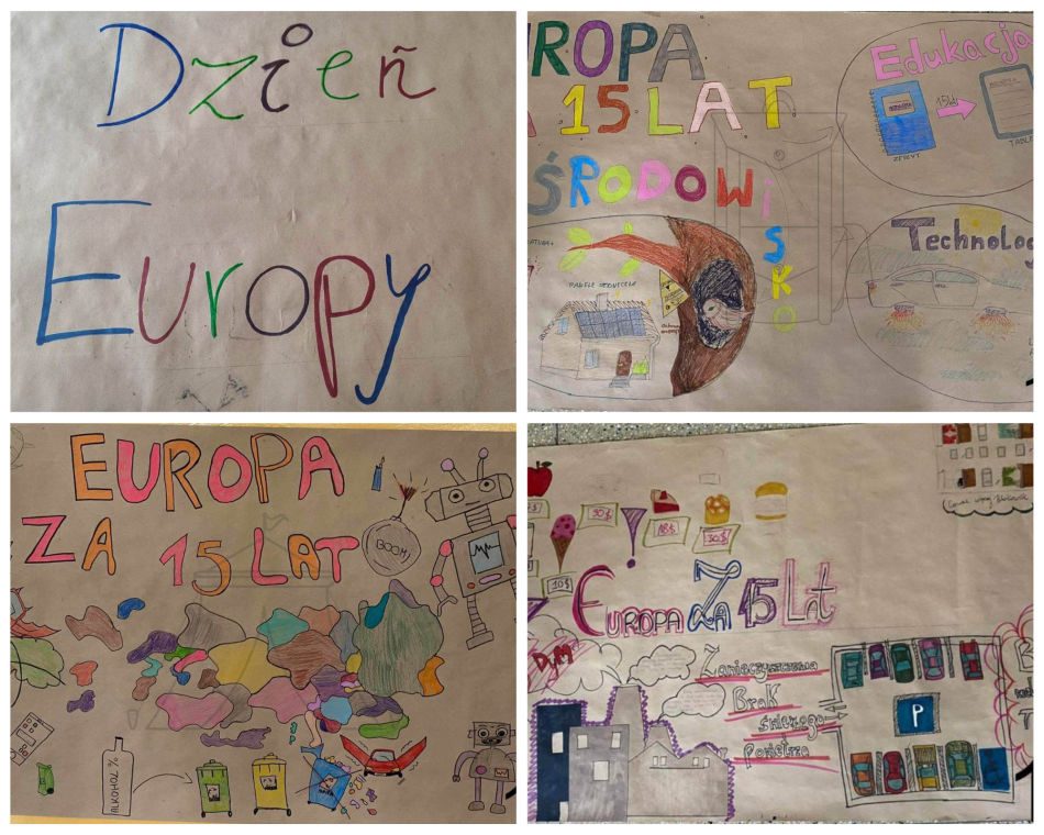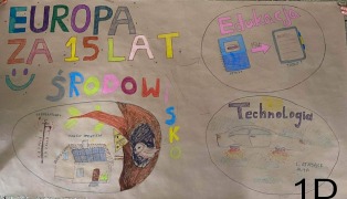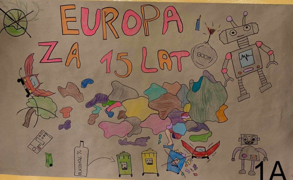 Drugim zadaniem, jakie miały wykonać klasy był collage na temat: "Jak wyobrażam sobie Europę za 15 lat". Wszystkie klasy dysponowały wielkimi arkuszami papieru i przyborami malarskimi. Prace klas - bardzo twórcze i ciekawie zaprezentowane, skłaniają jednak do refleksji, gdyż prawie żadna z klas nie przedstawiła wizji Europy optymistycznie.