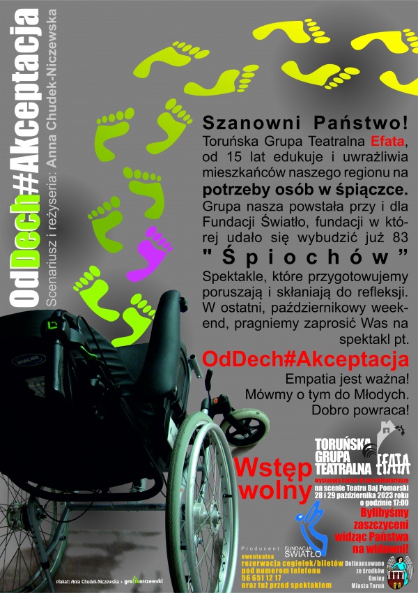 WEJŚCIÓWKI na spektakl- rezerwacja pod numerem telefonu 56 651 12 17, e-mail: fundacja@swiatlo.org.