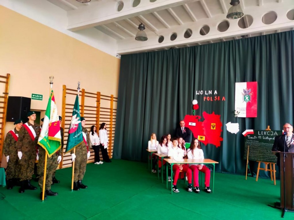 2023-11-1211 LISTOPADA 6LOUroczystość dot. Odzyskania Niepodległości odbyła się w naszym liceum 10 listopada. Młodzież z klasy IID, przybliżyła nam fakty związane z niewolą przez 123 lata oraz wspaniałym momentem odzyskania wolności.