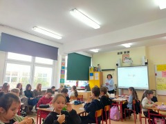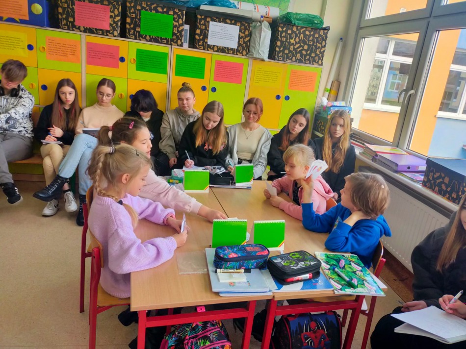 Wizyta klasy humanistyczno-pedagogicznej w Szkole Podstawowej nr 16 w Toruniu - obserwacja zajęć prowadzonych w II C.