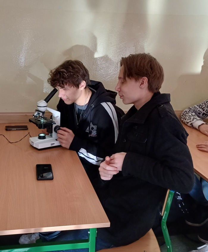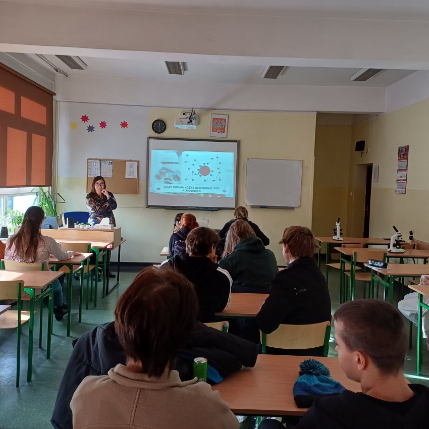 W ramach zajęć uczniowie przygotowali preparat, który następnie obserwowali pod mikroskopem oraz w celu utrwalenia zdobytej wiedzy rozwiązali quiz dotyczący ruchów Browna.