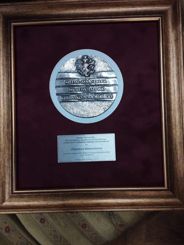Ogromne  wyróżnienie stało się udziałem Pana Dyrektora Zbigniewa Matuszewicza. Za szczególne zasługi w szerzeniu pamięci o przeszłości i wspieranie Sybiraków został odznaczony Medalem Marszałka Województwa ‘’Unitas Durat Palatinatus Cuiaviano- Pomeraniensis’’. Jest to najwyższe odznaczenie, jakie może przyznać marszałek. Gratulujemy!