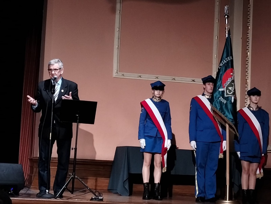 W poniedziałek 26 lutego w Młodzieżowym Domu Kultury w Toruniu odbyła się konferencja pt. ‘’Bezpieczeństwo osób starszych’’. Jej organizatorami byli: Związek Sybiraków oddział w Toruniu i OSP  Toruń Podgórz. Nie zabrakło na niej przedstawicieli naszej szkoły. Uczniowie klas mundurowych stanowili poczet sztandaru Związku Sybiraków oddział Toruń. Monika Cieślewicz pięknie wykonała pieśń ‘’Syberiada’’, a wspólnie z Sebastianem Jędrzejewskim ,wykonali Hymn Sybiraków.