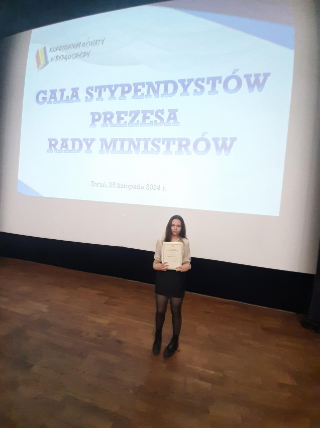 2024-12-23STYPENDIUM PREZESA RADY MINISTRÓWW dniu 25.11.2024 uczennica VI LO Anastasiia Abakumova z klasy 2B otrzymała Stypendium Prezesa Rady Ministrów.