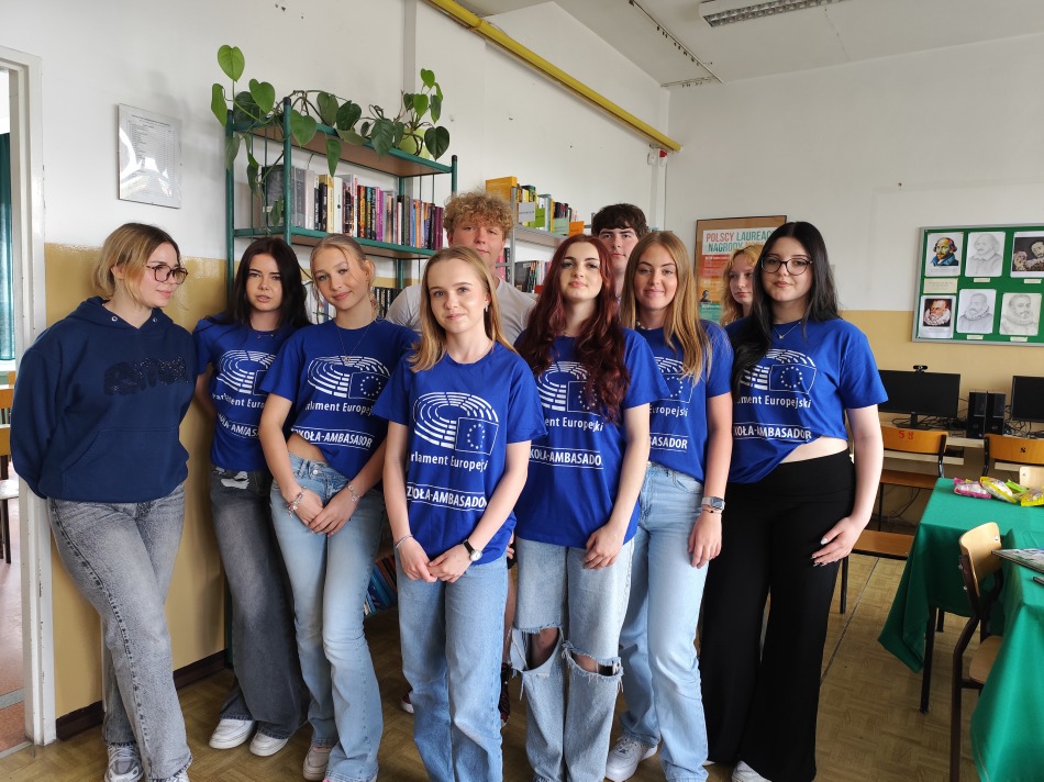 5 czerwca 2025 r. obchodziliśmy w naszej szkole Dzień Europy. Z tej okazji młodsi ambasadorowie programu EPAS przygotowali QUIZ o EUROPIE NA CZAS. Przy sześciu stanowiskach rozstawionych na szkolnych korytarzach drużyny z każdej klasy rozwiązywały zadania dotyczące Parlamentu Europejskiego i państw Unii Europejskiej. Uczniowie musieli m.in. zaśpiewać "Odę do radości" czy narysować flagi poszczególnych państw. Wszyscy doskonale się bawili, a przy okazji utrwalali wiedzę. Zwyciężyły ex aequo drużyny z klas II a i III e. Gratulujemy!