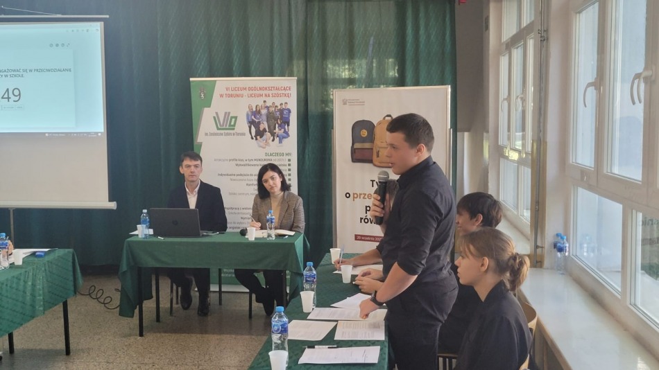 Dyrektor VI LO podkreśli, że rozumie zasady debaty, ale w życiu nie ma tylko bieli i czerni, występuje cała gama szarości, która nakazuje nam wszystkim, uczniom i pracownikom szkoły angażowanie się w przeciwdziałania przemocy.