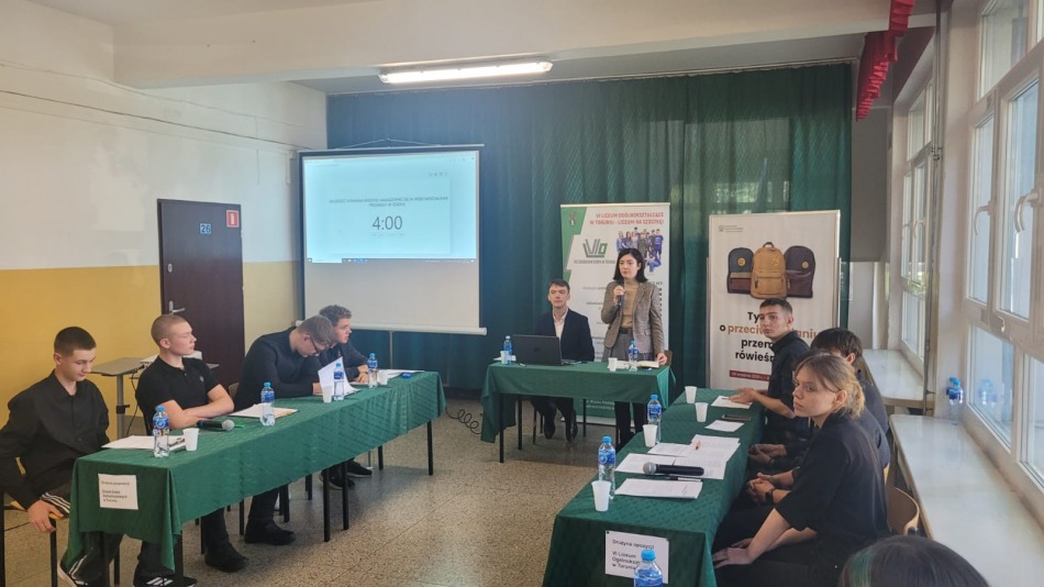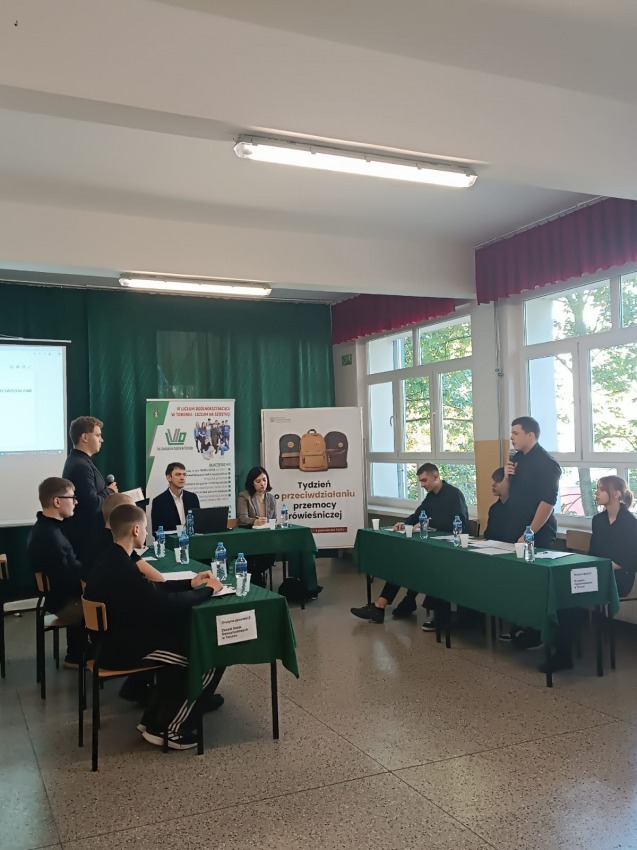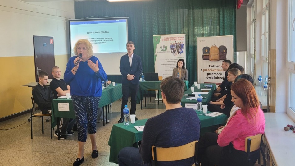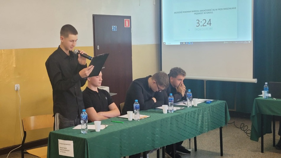 Drużyny w ramach debaty zmierzyły się z tezą: Młodzież powinna bardziej angażować się w przeciwdziałanie przemocy w szkole.