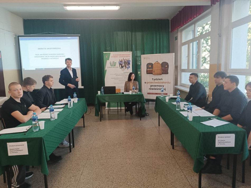 2 października 2025 r. w VI Liceum Ogólnokształcącym im. Zesłańców Sybiru w Toruniu odbyła się debata oksfordzka pt. “Niewidzialni świadkowie”, podczas której zespół uczniów VI LO przeprowadził dyskurs z zespołem uczniów reprezentującym Zespół Szkół Samochodowych w Toruniu. Debata oksfordzka, wpisuje się w kampanię Ministerstwa Edukacji Narodowej pn. „Tydzień Przeciwdziałania Przemocy Rówieśniczej”, realizowanej w dniach od 29 września do 3 października 2025 r. oraz w „Kampanię Pozytywnej Reakcji. Razem przeciw przemocy”, której inicjatorem jest Kuratorium Oświaty w Bydgoszczy. W realizację wydarzenia zechciała się również włączyć Fundacja „Projekty Edukacyjne”, organizator Kujawsko-Pomorskiej Ligi Debat. Debatę swoją obecnością zaszczycili: