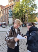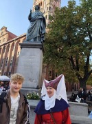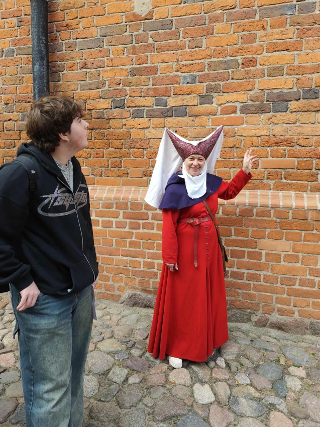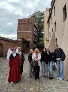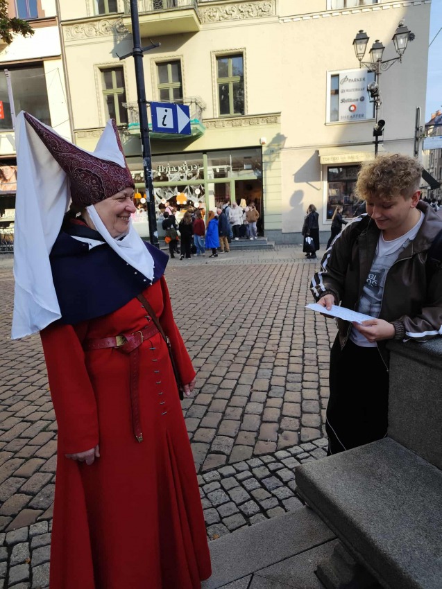 W naszej wycieczce towarzyszyła nam również wieloletnia przewodniczka po Toruniu pani Nadzieja Hajduczenia, która specjalnie dla nas przyszła ubrana w strój mieszczki. Pani Nadzieja uzupełniała wypowiedzi uczniów ciekawymi historiami z dziejów miasta.
