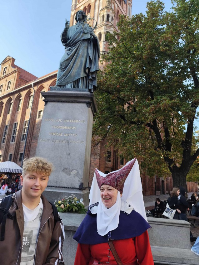 23 października 2025 r. grupa uczniów klasy 3d, realizujących rozszerzony program języka niemieckiego, wraz z opiekunką p. Izabelą Koziarzewską uczestniczyła w lekcji poza klasą. Udaliśmy się na Stare Miasto naszego pięknego Torunia, gdzie odbyły się zajęcia poświęcone poznawaniu historii oraz zabytków miasta. Każdy z uczniów przygotował krótką opowieść po niemiecku o wybranym zabytku.